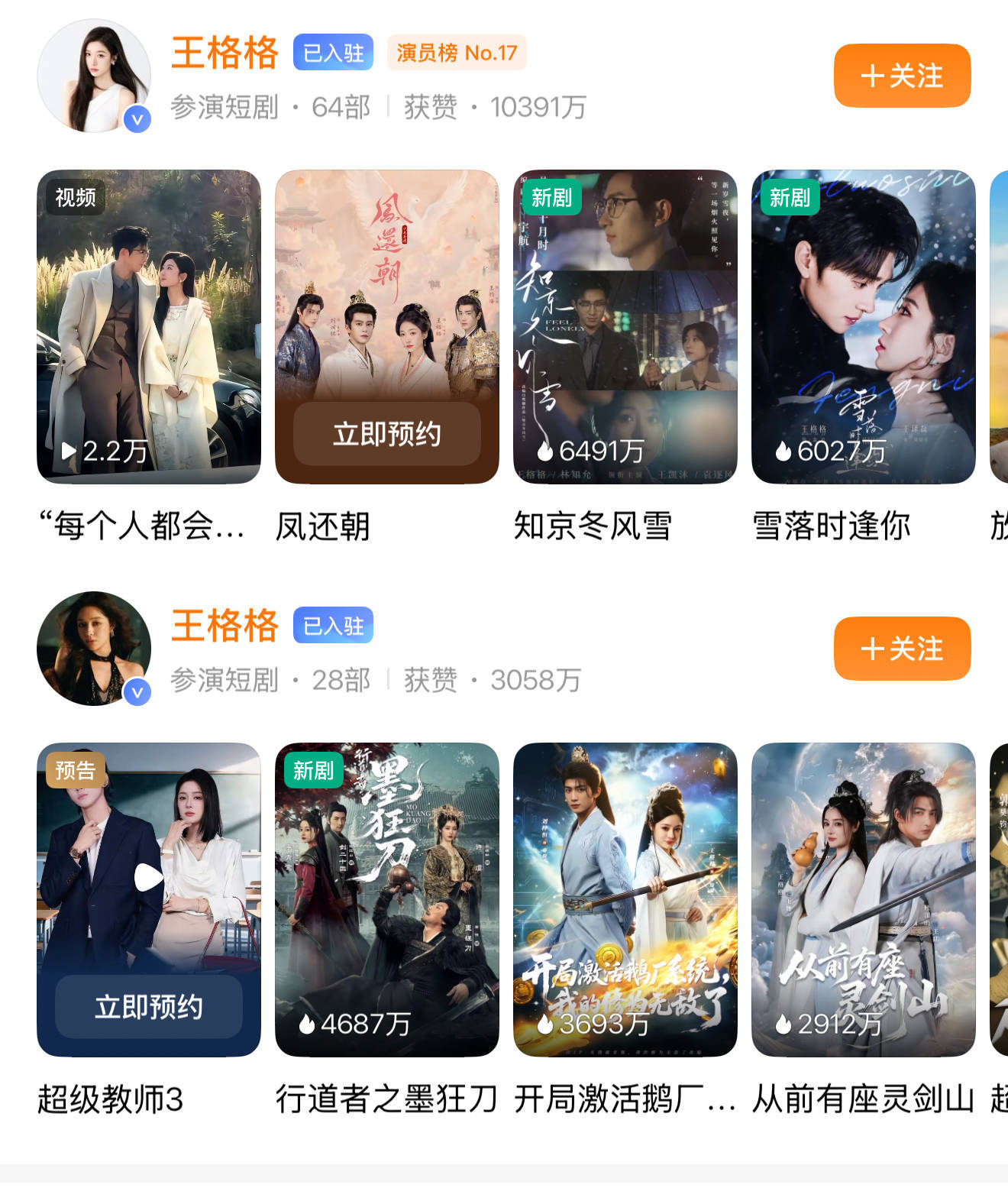 此王格格主攻女频剧,而男频剧市场也有一位本名王格格的同名女演员。