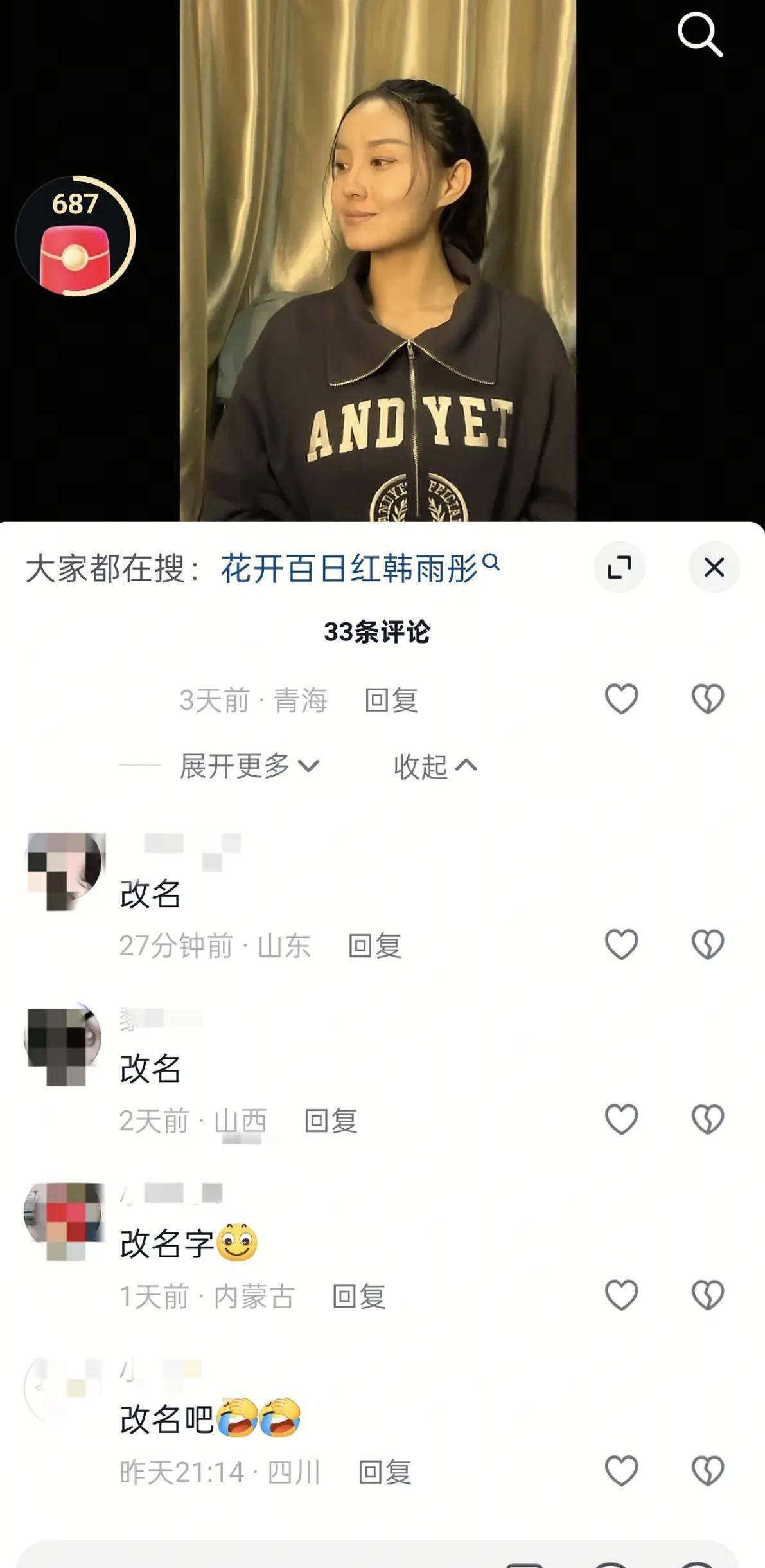 然而,她在发布一支宣传视频后,因与听花岛艺人韩雨彤同名,被听花岛韩雨彤的粉丝“逼”着改名。