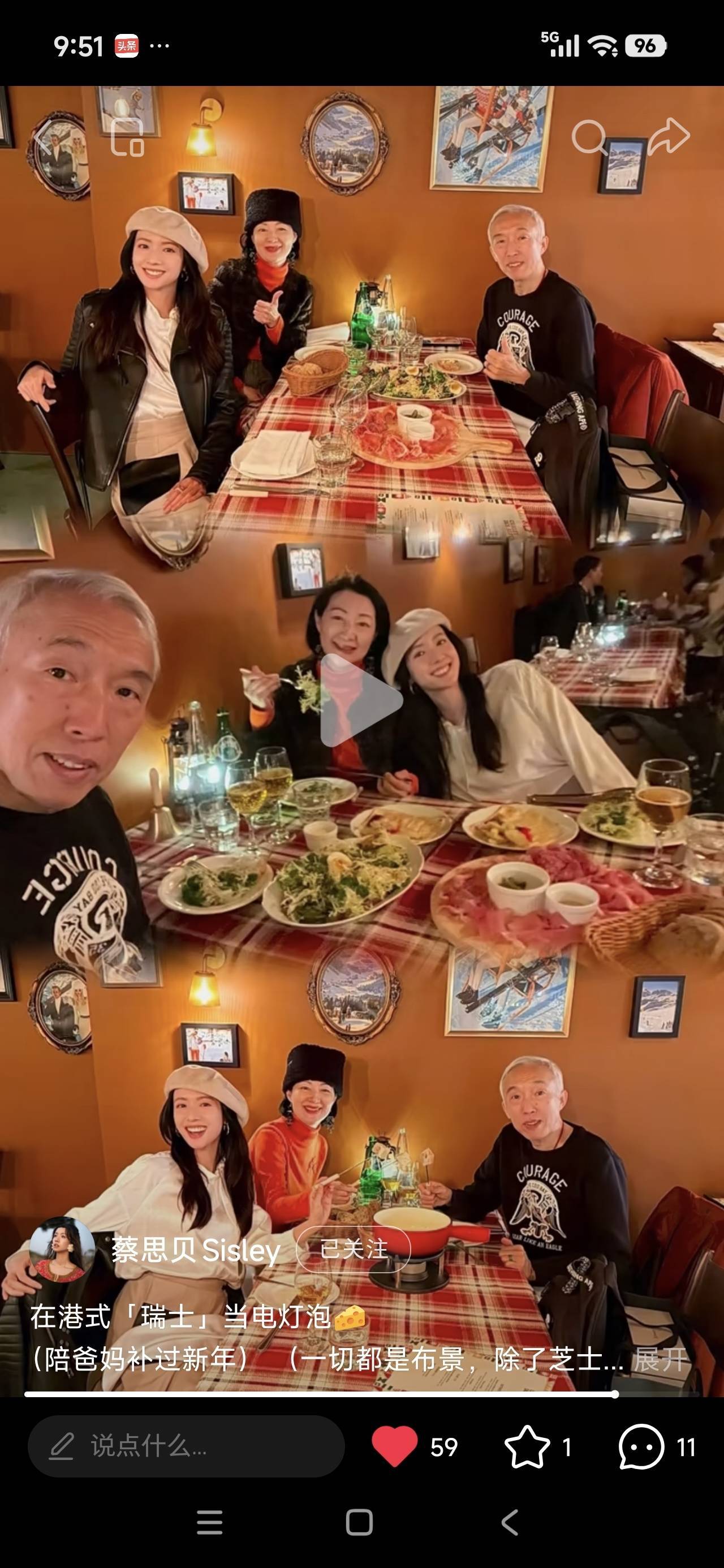 从所晒出的视频当中可以清楚的看到,蔡思贝与父母共同现身某知名餐厅,与父母共进晚餐,品尝各种不同美食,现身台球房,与爸爸开心开启台球赛。时不时都展现出灿烂的笑容,与父母同框更是化身妥妥二十四孝女儿。